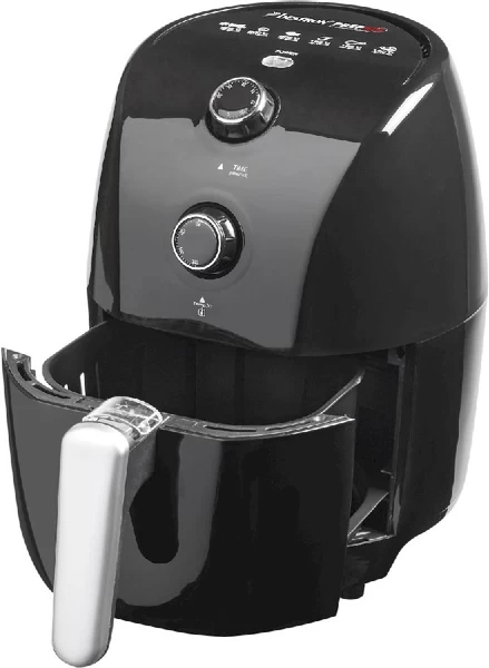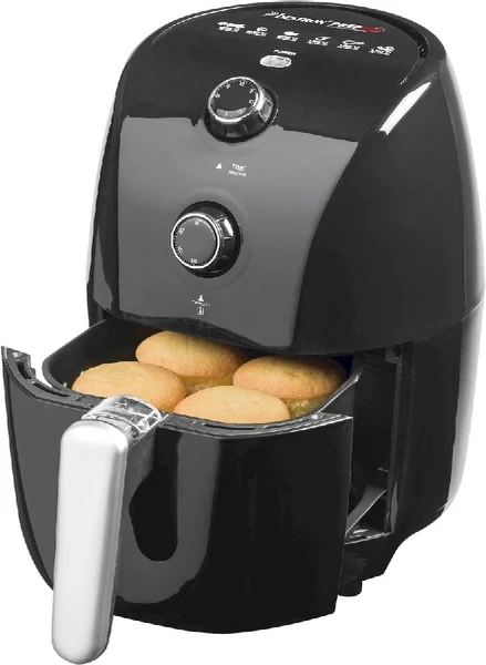 Of je nu cakejes wilt bakken voor bij de koffie of een bittergarnituur voor bij de vrijdagmiddagborrel, de Bestron PrepAir Hetelucht friteuse kan het allemaal! Met een capaciteit van 1,5 liter is er namelijk ruimte voor ongeveer twee porties friet of vier snacks. Stel de tijd en temperatuur handmatig in en het bakken en braden kan beginnen! Je kunt ´m bovendien instellen tot 200 graden. Kies dus de gewenste temperatuur en tijd en als ´ie klaar is, ringt het eindsignaal. Zo heb je nooit een aangebrande cake of ontplofte bitterballen!