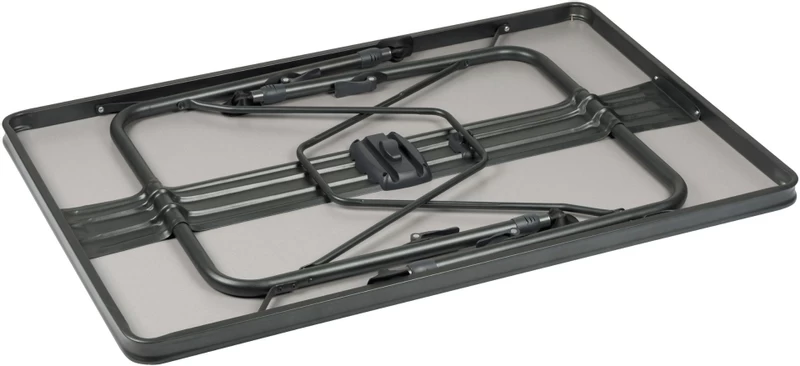 De campingtafel is voorzien van een Melamine tafelblad. Dit tafelblad is water- en hittebestendig. Het Melamine tafelblad in combinatie met het aluminium frame zorgt voor een gewicht van 6,8 kg.