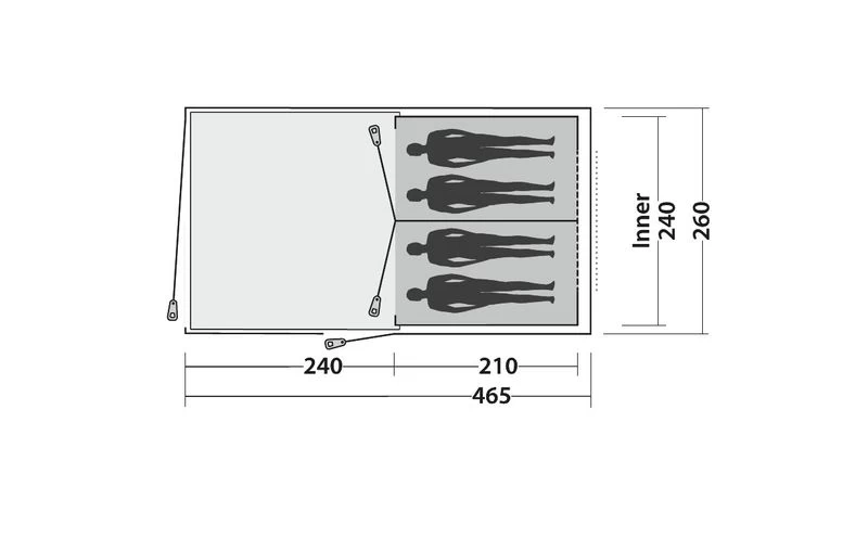De tent is voorzien van een donkere binnentent. Hierdoor kun je lekker doorslapen, ook als het al licht wordt. Heb je ‘s avonds graag een verlichte tent? In het midden van de tent zit een ophangpunt. Hang hier een hanglamp aan en jouw tent is binnen no time gezellig verlicht. Tot slot is het grondzeil in de voortent afneembaar. Hierdoor maak je hem eenvoudig schoon en houd je jouw tent altijd schoon en fris!