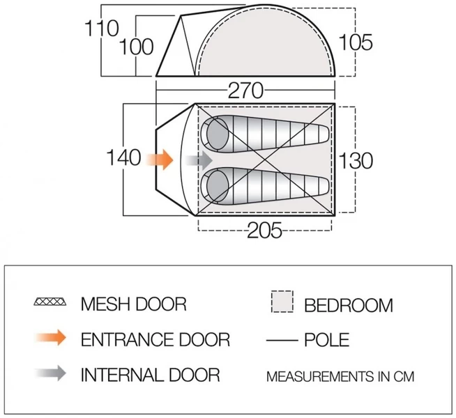 De Vango Tay 200 tunneltent is ideaal voor een kampeeravontuur met z’n tweetjes! Deze tweepersoons tent is gemakkelijk op te zetten een staat binnen 10 minuten rechtovereind. Met een afmeting van 270 x 140 x 110 cm en een gewicht van slechts 3,3 kg neem je deze topper gemakkelijk overal mee naartoe. Dankzij de extra ruimte in de voortent kun je ook nog mooi wat extra spullen kwijt. Deze tent heeft er zin in!