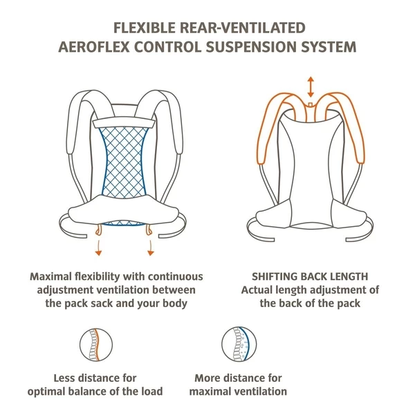 Het rugventilatiesysteem van de rugzak is afkomstig vanuit 4 richtingen. Hierdoor zal je tijdens je tocht heel wat minder transpireren en blijft je rug goed geventileerd tijdens de beklimming. Wel zo frisjes!